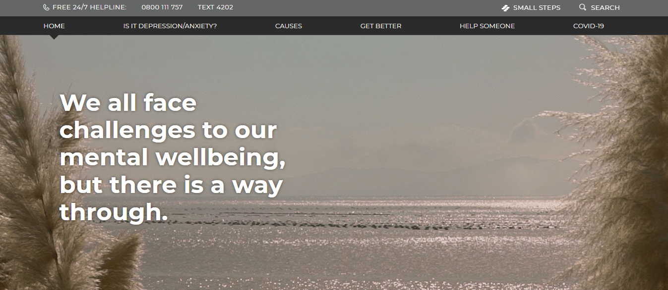 “Depression”網站是紐西蘭國家公眾健康宣導活動” National Depression Initiative”其中一個項目。網站的目標是幫助紐西蘭民眾認識及了解憂鬱症,鼓勵民眾適時求助,並提供憂鬱症的專業協助資源。